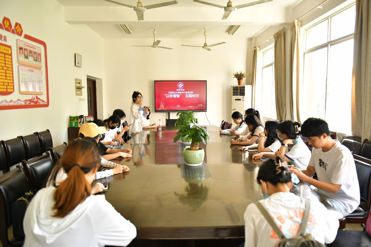 马克思主义学院2022级研究生党支部于2023年5月30日下午3:00,在云塘校区学生活动中心401会议室举行“以学增智”理论学习暨研讨会,本次活动由党支部书记孙淑雅主持。