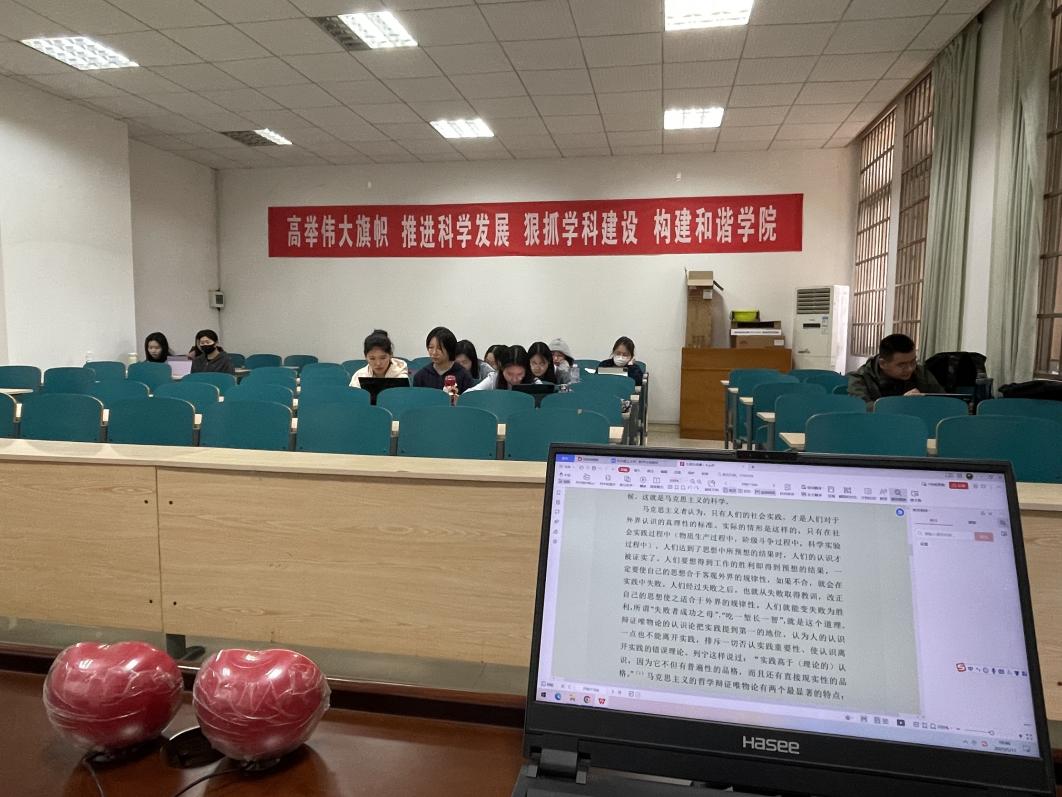 2023年5月11日上午10时,马克思主义学院2023年上半年预备党员培训班于云塘校区文科楼C202开展《读原著、学原文》的学习。本次教学理论课由预备党员培训班班长张轩瑞主持,马克思主义学院全体预备党员参加,党员代表钟雅琦、余敏负责监督。