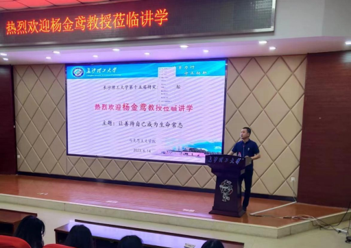 2023年6月14日上午9:00,湖南省委宣传部原副部长、省文化创意产业协会会长杨金鸢教授应邀来到永利集团88304官网马克思主义学院,在永利官网云塘校区文科楼A200报告厅作了题为“让善待自己成为生命常态”的专题讲座。本次讲座由我院唐俊副院长主持,一、二年级研究生聆听了讲座。