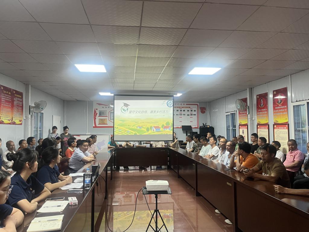 晚上7点,实践团于五郎溪村村委会进行了“理响芷江·青年说”志愿服务宣讲活动启动仪式暨首场理论宣讲会,三道坑镇党委副书记李芳、组织委员廖博吾、五郎溪村全体村干部及党员、群众对实践团的到来表示热烈的欢迎。实践团两位成员唐婧妤、刘秋梅分别围绕 “巩固脱贫攻坚新胜利,开启乡村振兴新篇章”,“坚守文化自信,激发乡村活力”进行宣讲。此次宣讲获得了大家的一致高度认可,其中有村民说道原来自家村取得了如此多的成就,感到无比的自豪,对五郎溪村未来的发展抱着十分的自信。
