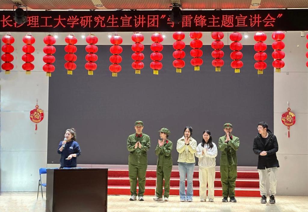 活动伊始,宣讲团成员黄博吉、夏小雨、周明炬、蒋娜、罗霈伶、陶华宇为大家演绎了原创情景剧《我与雷锋的那些日子》。剧中,大学生小雨原本对“助人为乐”持疑惑态度,一次意外小雨“穿越”到雷锋所在的时代,在与雷锋相处的日子里,她目睹了雷锋将助人为乐的精神融入到日常生活的每个细节。这段经历让小雨深刻认识到,助人为乐不仅是一种崇高品德,也是实现个人成长和内心满足的途径。回到现实生活,小雨决心将所学的雷锋精神转化为实际行动,积极参与志愿服务。精彩纷呈的表演,让同学们备受鼓舞,决心永用实际行动践行雷锋精神。