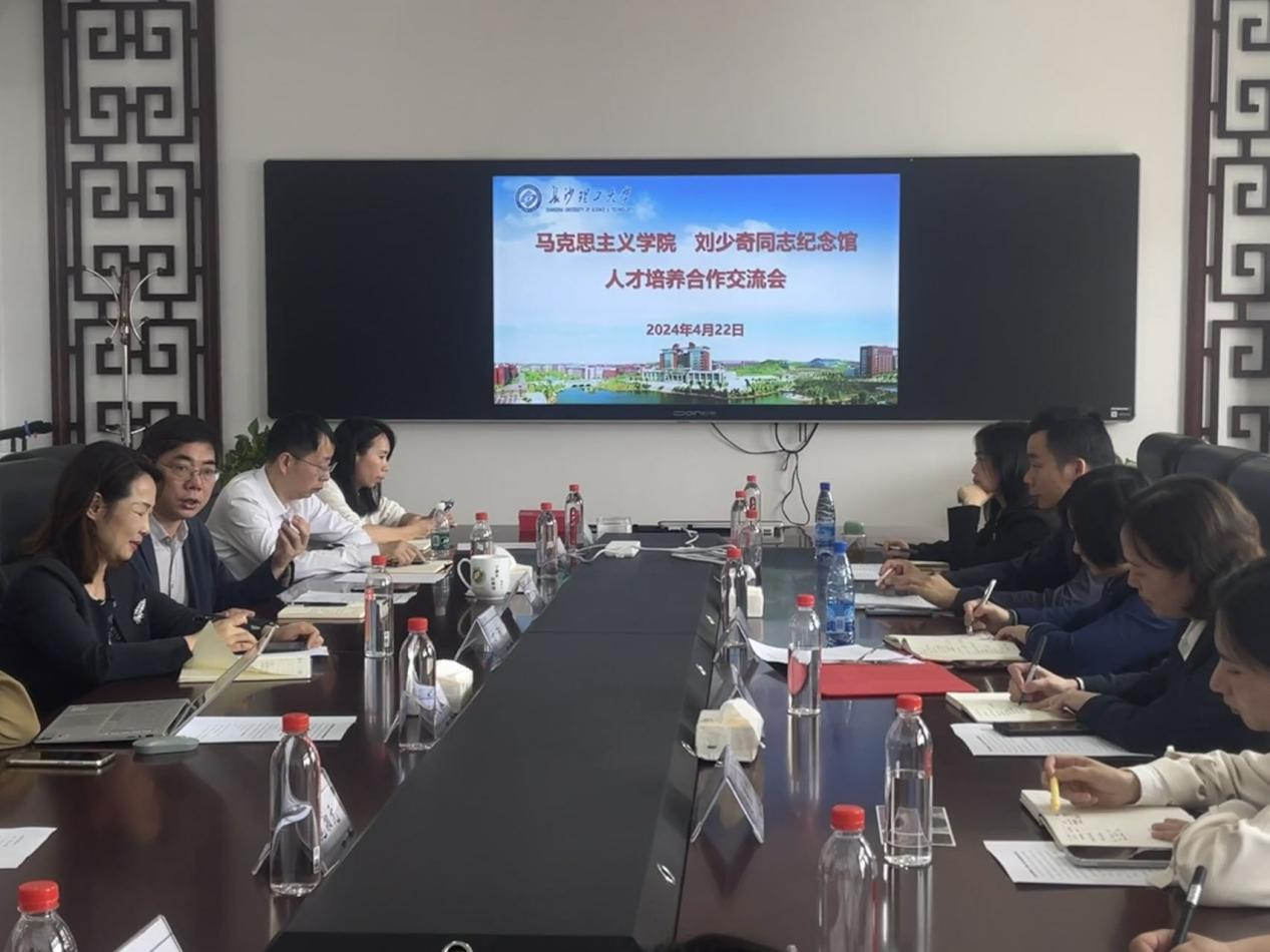 为贯彻落实学校就业工作部署,全力促进高质量就业。4月22日上午,马克思主义学院与刘少奇同志纪念馆在云塘校区文科楼B602会议室开展人才培养合作交流会。永利官网党委委员、宣传部部长方琼、马克思主义学院院长张明海、副院长(挂职)钟芙蓉,刘少奇同志纪念馆副馆长熊学爱、宣传教育部部长谢华、文保编研部部长刘新庆等领导、专家、教师参加会议。