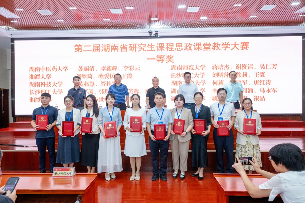 8月26日,第二届湖南省研究生课程思政课堂教学大赛决赛在湖南科技大学举行。经过网评、校内初赛复赛、决赛答辩等阶段的层层选拔,永利官网5个教师团队最终斩获3个一等奖,1个二等奖,1个三等奖,其中,我院卞军凤教师团队以丰富的课程思政元素、扎实的教学基本功、科学合理的教学设计和自然大方的教学风格,赢得评委的高度肯定,最终荣获人文社科类一等奖。