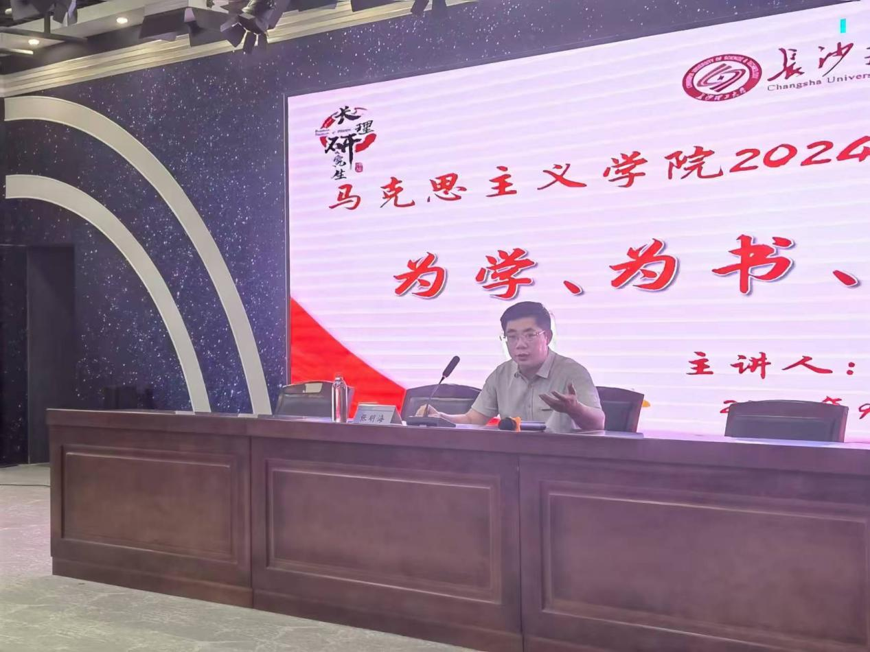 2024年9月18日下午3点,永利集团88304官网马克思主义学院院长张明海以“为人、为学、为书、为事”为题,在云塘校区文科楼B300报告厅为学院2024级研究生上了一堂深入浅出的学术和人生指导课。此次活动由辅导员曾蓓老师主持,2024级全体研究生参加。