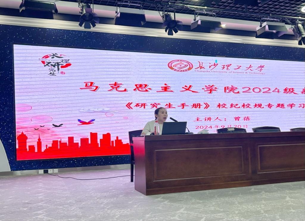 为进一步提升马克思主义学院研究生新生的规矩底线意识和自我管理能力,让新生们能够快速适应研究生生活,9月20日上午9时,马克思主义学院于云塘校区文科楼B300报告厅开展《研究生手册》校纪校规专题学习。本次学习由院学生工作办公室主任曾蓓老师主讲,2024级全体研究生参加。