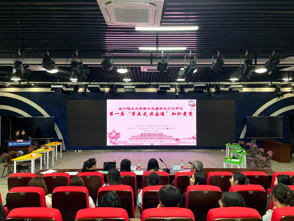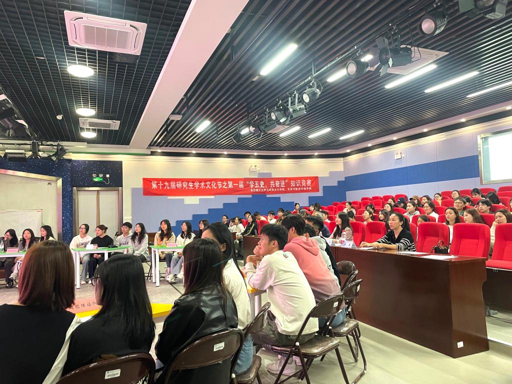 2024年11月10日晚19:00,由永利集团88304官网研究生院主办,马克思主义学院和文学与新闻传播学院承办的校研究生第一届“学党史,共奋进”知识竞赛决赛在云塘校区文科楼B300报告厅举办,本次出席的嘉宾有文学与新闻传播学院党委副书记刘莎,马克思主义学院副院长郭华、副教授赖某深和学工办主任曾蓓,以及各学院参赛学生和现场观众共计100余人。