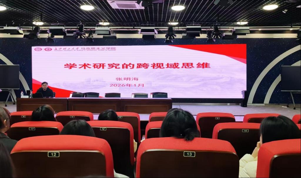 接着,张明海围绕“跨视域思维与学术研究创新”做专题分享。他指出,当前学科交叉融合趋势显著,跨学科思维是驱动学术创新的核心力量。他结合自身科研经历与典型案例,从理论构建与思维培养两方面展开论述,强调文科研究应在夯实专业根基的基础上,主动打破学科壁垒,积极融汇马克思主义理论、哲学、社会学等相关学科知识,并密切关注科技动态与社会现实。他还系统阐释了“理论——问题”双向互动的学术路径,倡导以问题意识为导向,通过洞察社会需求、深化理论探索来进行系统性提炼,构建兼具理论深度与现实关怀的创新研究框架。此外,张明海还分享了文献梳理、关键词凝练及跨学科协作等实用研究方法,为提升研究生科研能力提供了具体指导。