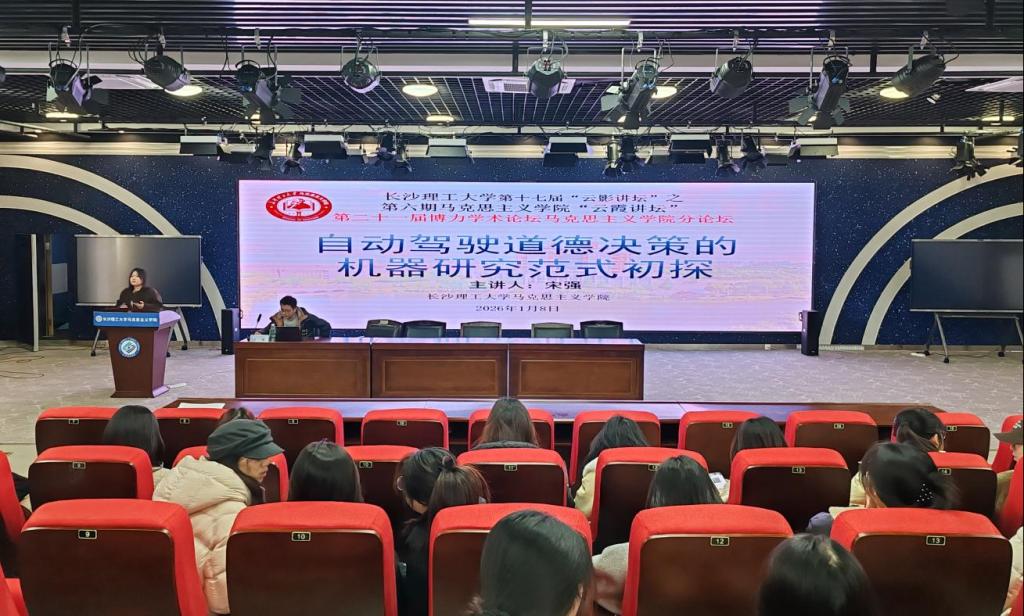首先,宋强以“自动驾驶道德决策的机器研究范式初探”为题,以经典思想实验为切入点,通过对“电车难题”“开关难题”“天桥难题”等典型案例的具象化阐释,精准提炼出自动驾驶决策过程中“少数与多数”“个体与群体”之间的伦理张力,并深入剖析了当前主流技术路径在生命价值量化、道德排序及数据合规等方面面临的困境。在此基础上,他系统梳理了自上而下的规则嵌入模式与自下而上的机器学习模式这两类传统技术方案,深入剖析功利主义算法、义务论框架等现有路径的实践缺陷。他强调,未来自动驾驶伦理决策应突破传统人类逻辑模仿,依托V2X车联网等大数据技术,构建系统化、网络化的新型决策体系,通过技术整合与场景结构化设计,在风险最小化基础上兼顾个体权利与社会公正。整场报告内容深入浅出,理论与案例结合紧密,激发了在场学生的深入思考。