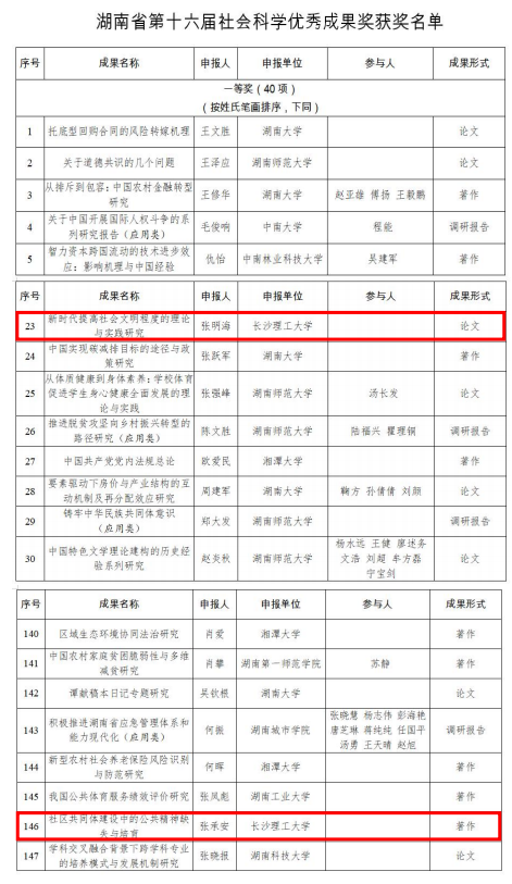 近日,湖南省第十六届社会科学奖拟获奖名单正式公示,永利集团88304官网马克思主义学院再传捷报,共有两项高水平科研成果入选,且实现了一等奖的重大突破。