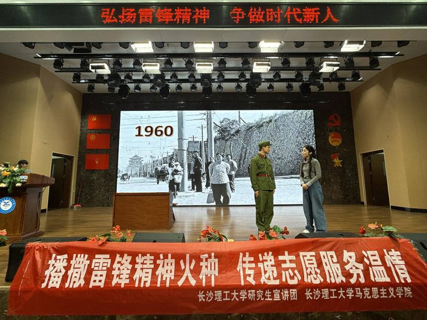 学院依托研究生宣讲团这一特色平台,将雷锋精神宣讲延伸至中小学课堂。3月以来,宣讲团先后走进长郡雨花外国语学校、长郡外国语第一附属小学等多所学校,为千余名小学生带来沉浸式宣讲。宣讲团以“情景剧+理论宣讲”为核心模式,演绎原创情景剧《我与雷锋的那些日子3.0》,搭配雷锋日记诵读、红歌合唱、有奖问答等环节,让雷锋形象可感可知,在少年心中播撒向善种子。