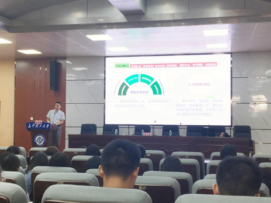 首先院长陈万球教授从学院基本情况、学科建设情况和科研发展情况三个方面详细介绍了学院的基本情况同时向新生们展现了学院风采。接下来陈院长详细介绍了学位点与学科建设和科研发展情况,让新生对学院有了更深入的了解。陈院长强调研究是一种穷根究底的和锲而不舍的思考活动,研究生是以穷根究底和锲而不舍为事业的学生,并从学术研究的要素与方法,学术道德的坚守与弘扬方面给予了新生建议,最后他用十六字“感恩惜缘、厚德载物、追求卓越、敢于担当”与同学们共勉。