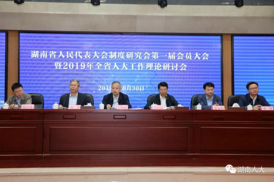 10月30日上午,湖南省人民代表大会制度研究会第一届会员大会暨2019年全省人大工作理论研讨会在长沙召开,省人大常委会党组副书记、副主任黄关春、王柯敏,秘书长胡伯俊出席会议。湖南省人民代表大会制度研究会第一届会员大会举行。会议表决通过了研究会章程、理事名单和会长、副会长、秘书长,标志着湖南省人民代表大会制度研究会正式成立。根据表决结果,省人大常委会党组副书记、副主任王柯敏当选为会长;省人大常委会研究室副主任王向前、杨志勇当选为副会长;研究室综合处处长戴志华当选为秘书长,兼法定代表人。重新设立湖南省人民代表大会制度研究会 是新时代深入学习宣传贯彻习近平总书记关于坚持和完善人民代表大会制度重要思想的重大部署;是省十三届人大常委会党组加强全省人大系统思想理论建设的重要举措;是对标全国人大、对接中国人大制度理论研究会的一项重要工作。王柯敏指出,要建设一个对党绝对忠诚、坚定人大制度自信的红色智库;要建设一个扎根人大制度研究、助推人大工作创新的专业智库;要建设一个服务全省大局、善于经世致用的湖湘智库;要建设一个广泛交流合作、凝聚各方智慧的开放智库。永利官网特色智库“新时代中国特色社会主义故事传播中心”承担的省领导交办课题“党的领导、人民当家作主、依法治国有机统一的理论与实践研究”的阶段性成果在大会上进行了交流。我院陈万球院长、余乃忠教授作为智库学者入选湖南省人民代表大会制度研究会会员。研究会要求全体会员把握政治性、增强针对性、提升创造性、注重实效性,充分发挥研究会的平台、载体作用,努力开创新时代全省人大制度理论和实践研究新局面。
