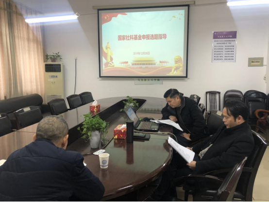 2019年12月30日上午在云塘校区文科楼B601进行了国家社科基金申报选题指导会。院长陈万球、副院长梁建新、教授委员会主任余乃忠参加。