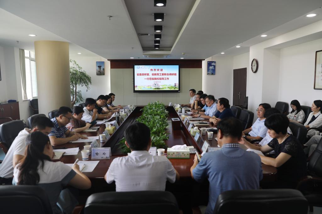 6月12日上午,省委政研室副主任蒋俊,省委政研室科教文卫处处长姚杰,信息中心主任李珺,省教科院高教所所长段慧兰等省委政研室、省教科院联合调研组一行来永利官网调研“三全育人”综合改革试点工作。副校长谈传生,党委委员、组织部部长齐路良,学工部、人事处、计财处负责人,交通学院、汽机学院、电气学院、经管学院、马克思主义学院负责人及教师、辅导员代表参加调研会。
