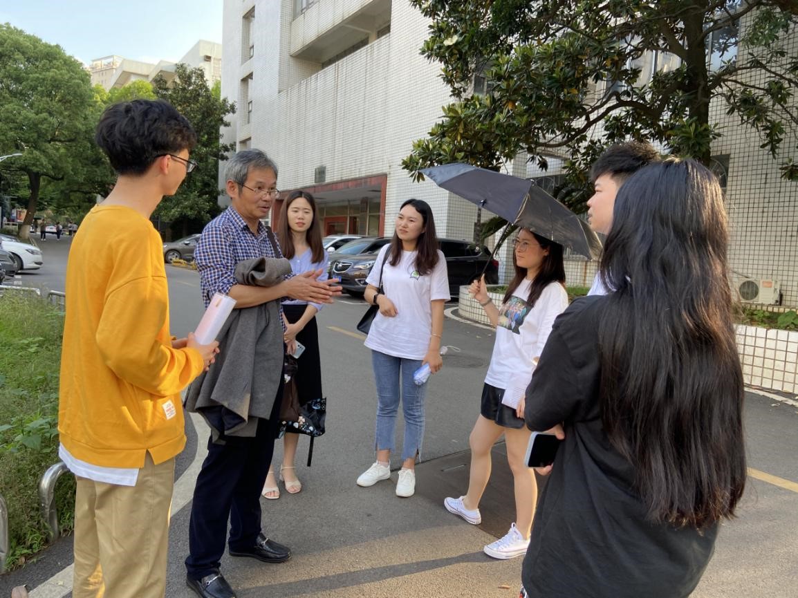 散会后,在校园内宣讲团成员还继续征求教师意见,迟迟不肯离去,赖老师对学生们循循善诱,耐心解惑,场面温馨而美好。