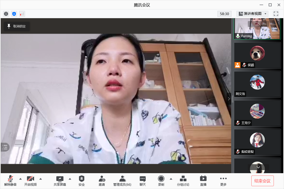 2021年7月9日下午3点,马克思主义学院2020级研究生通过腾讯会议平台召开期末主题班会。本次班会由班主任钟芙蓉主讲,2020级全体研究生参加。