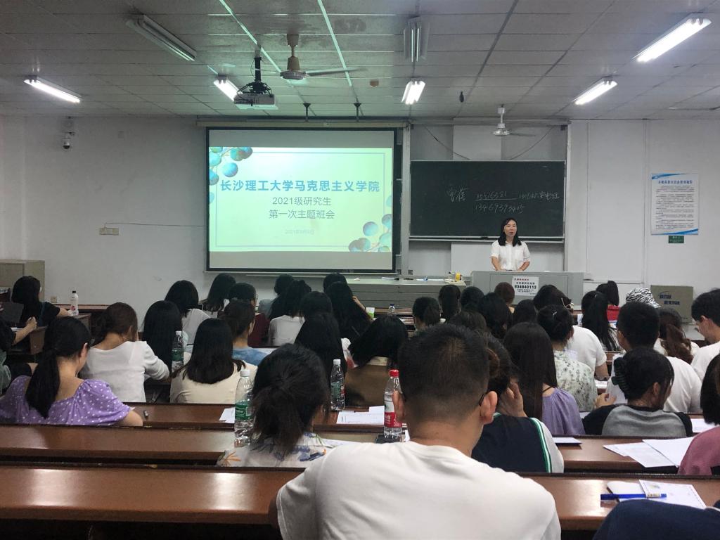 9月6日19:00,马克思主义学院在金盆岭校区四教309教室组织召开2021级研究生2021年秋季学期第一次主题班会。会议由辅导员曾蓓主持,2021级全体研究生参加。