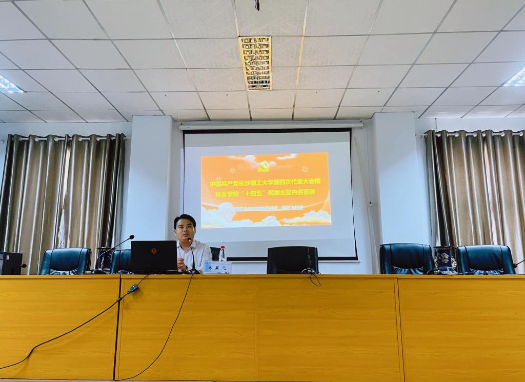 2021年9月8日下午2:30,马克思主义学院党委书记易显飞在金盆岭校区2号教学楼201会议室为我院2021级全体研究生宣讲学校第四次党代会精神,院学生工作办副主任曾蓓主持了此次宣讲会。