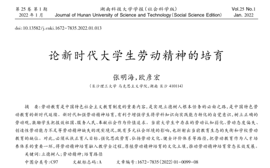 期刊:《湖南科技大学学报(社会科学版)》(CSSCI)2022年第1期