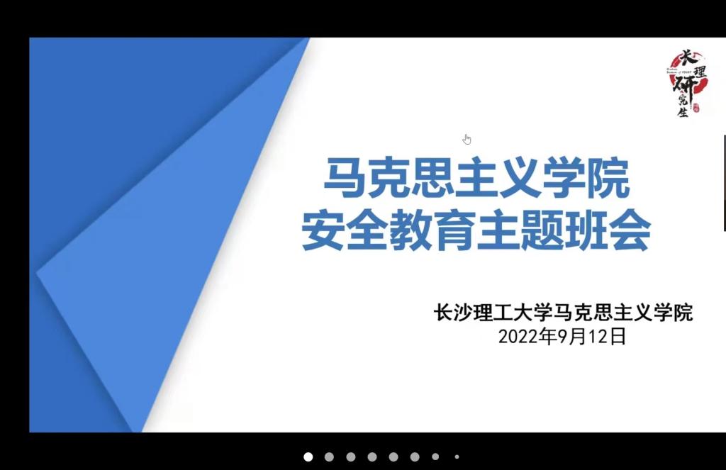 为了确保在校学生的安全,学生行为习惯以及增强同学们的安全防范意识和能力。我院于2022年9月12日晚上七点采取线上会议的形式,顺利组织学生开展安全教育主题班会。本次班会由辅导员陈珊老师主讲,副院长唐俊、马克思主义学院全体学生参加了本次班会。
