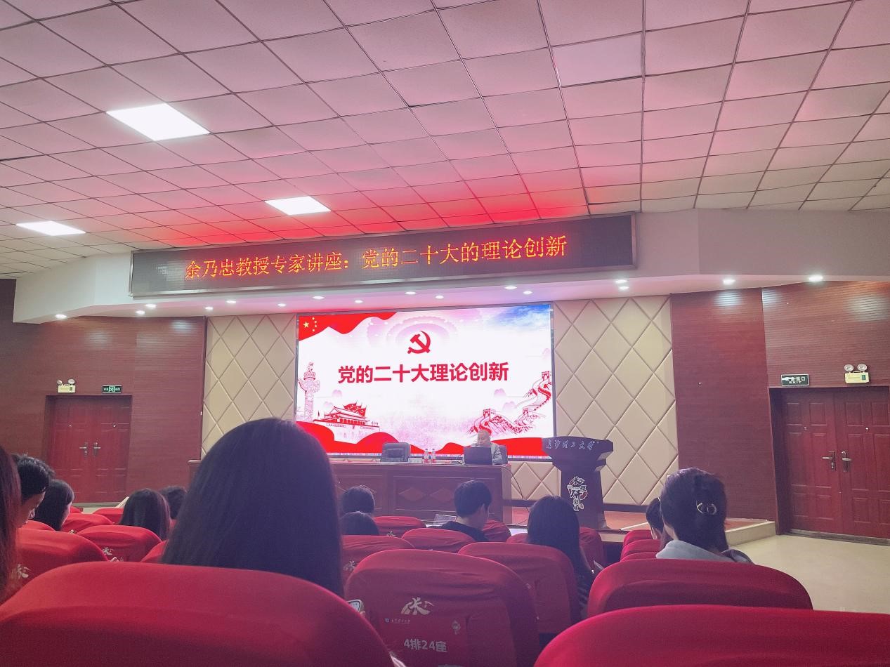 为深入学习贯彻党的二十大精神,2022年10月28号下午两点半,马克思主义学院于文科楼 A200开展党的二十大精神学习专题讲座,此次讲座特邀余乃忠教授主讲、董艾辉教授点评,马克思主义学院全体研究生参加。