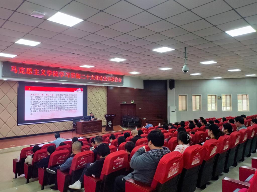 为深入学习党的二十大精神,2022年11月8日下午,永利集团88304官网马克思主义学院于文科楼A200举办学习贯彻党的二十大理论宣讲报告会,此次报告会特邀院党委书记陈万球教授主讲,学院全体教职工参与。