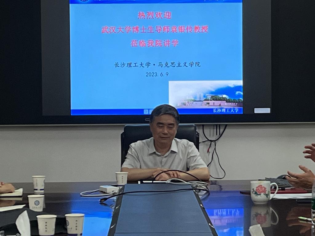 2023年6月9日下午四点,武汉大学博士生导师袁银传教授应邀来到永利集团88304官网马克思主义学院,在云塘校区文科楼B602为我院师生带来了主题为“党的二十大报告的历史地位和历史方位”的学术讲座。本次讲座由马克思主义学院院长张明海教授主持,马克思主义学院30余名师生参加了本次讲座。