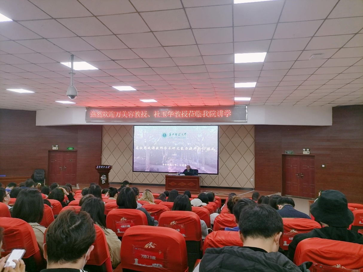 11月16日上午,华中师范大学马克思主义学院院长、博士生导师万美容教授应邀莅临学院,在永利官网云塘校区文科楼A200报告厅为永利集团88304官网第十九届博力学术论坛——马克思主义学院分论坛带来了“高校思政课教师学术研究能力提升的4P模式”的讲座。万美容教授就马克思主义理论学科的重要性以及如何对这门学科进行高质量学术研究等相关问题,与同学们进行了分享交流。本次讲座由我院院长张明海教授主持,学院一年级研究生近100人参加了本次学术讲座。