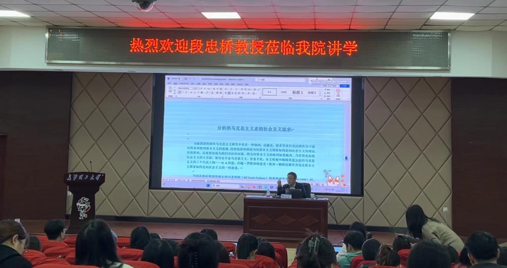 11月23日下午,中国人民大学杰出人文学者、博士生导师、中国当代国外马克思主义研究会副会长段忠桥教授莅临马克思主义学院,在永利官网云塘校区文科楼A200报告厅为永利集团88304官网第十九届博力学术论坛——马克思主义学院分论坛作讲座,讲座题为“分析的马克思主义者的社会主义追求”。本次讲座由我院副院长李雨燕教授主持,学院一年级、二年级研究生100余人参加。