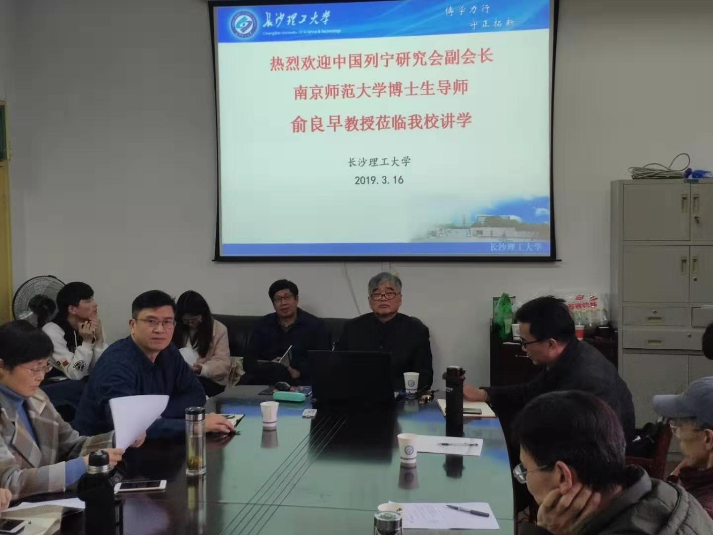 2019年3月16日下午,中国列宁研究会副会长、南京师范大学博士生导师俞良早教授应邀来到马克思主义学院,为学院师生带来了一场“关于一国或数国社会主义首先胜利的理论”的学术讲座。本次讲座由陈万球院长主持,张明海副院长、李雨燕副院长,刘解龙教授、陆群教授、董艾辉教授、刘保国教授、余乃忠教授、蒋显荣副教授、谢文成副教授等学院教师和研究生参加了本次讲座。永利官网土木工程学院党委书记张可荣教授也参加了本次讲座。