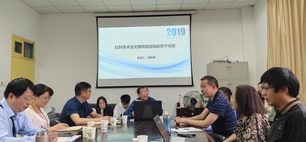 2019年5月12日下午4时,湖南省新闻出版行业领军人才、《湖南社会科学》前主编、现省社科联副主席戴树源研究员,应马克思主义学院邀请,在永利官网金盆岭校区4教503学术报告厅作了一场题为“社科学术论文撰写和投稿的若干问题”的学术讲座。陈万球院长、李雨燕副院长,教授委员会主任余乃忠教授、副主任陈芬教授,陆群教授、蒋显荣副教授等40余名师生聆听了此次讲座,讲座由陈万球院长主持。