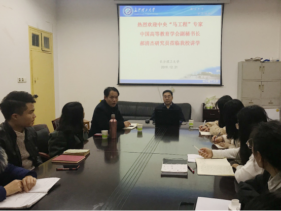 枫红柳绿,微风习习,2019年12月21日下午2:30,永利官网金盆岭校区4教503迎来了一场思想文化盛宴,南京大学哲学博士,中国高等教育学会副秘书长、中央“马工程”专家郝清杰研究员为马克思主义学院全体同学带来了一场关于科研“四项基本原则”的精彩报告。