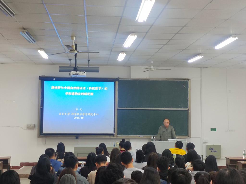 10月31日上午9点,东北大学博士生导师陈凡教授应马克思主义学院邀请,在永利官网金盆岭校区4教109作了题为《恩格斯与中国自然辨证法(科技哲学)的学科建构及创新发展》的学术讲座,讲座由我院院长陈万球主持,李雨燕副院长、院学科办文贵全主任、廖苗副教授、刘佳男博士等我院教师,学院2020级全体研究生听取了讲座。