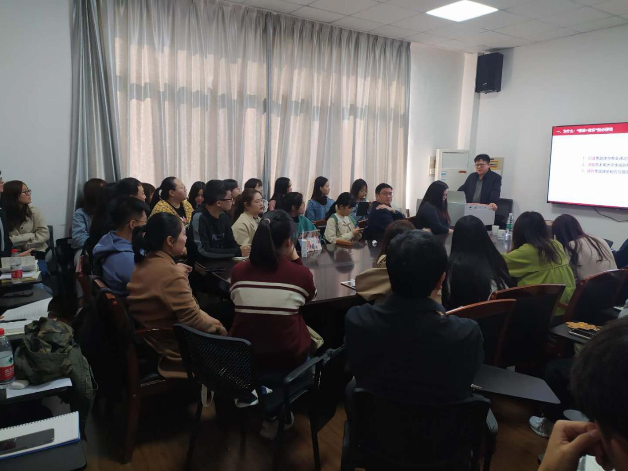 胡艺华教授先是播放了名乐《黄河大合唱》来引出同学们对音乐的感悟,随后胡教授分别从“思政+音乐”的必要性、可能性、基本内涵、八个认识误区、教学步骤、实际效果六大方面进行了深入又丰富的解读和分析,最后,胡教授结合自身事例,讲述了自己从事“思政+音乐”思政课改革创新教学的心得体会。