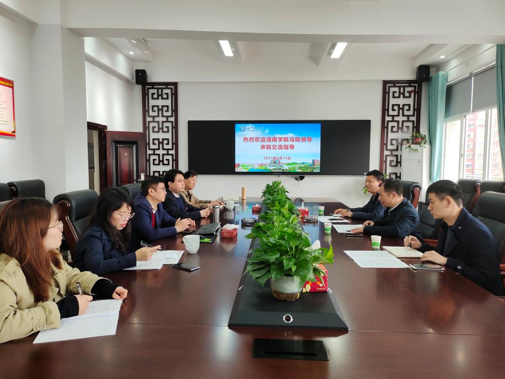 廖义军院长对自己学院在学科建设、人才引进等方面进行了介绍。随后双方就社科基金项目申报、“金课”建设、名师工作室等问题进行深入交流。