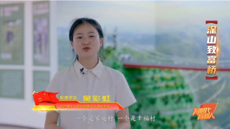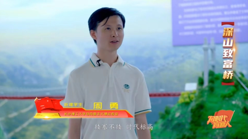 近日,由中共湖南省委教育工委和湖南省教育厅主办,湖南教育融媒体中心、湖南教育电视台承制,湖南所有高校联合共建的一档思政大课——《为时代育新人》第五集《大道之行》在全网热播。永利集团88304官网马克思主义学院王威峰老师和学生代表周勇、张子豪、侯颖、朱瑶、吴彩虹、金玲、何玲莉受邀参与了节目录制。永利官网师生主要参与了京张铁路施工情景模拟现场、湘西州矮寨镇、湖湘劳模工匠馆、中车株洲电力机车有限公司展览馆等相关场景的拍摄,辗转常德、湘西、株洲、长沙多地,为观众呈现了一堂精彩的移动思政课。
