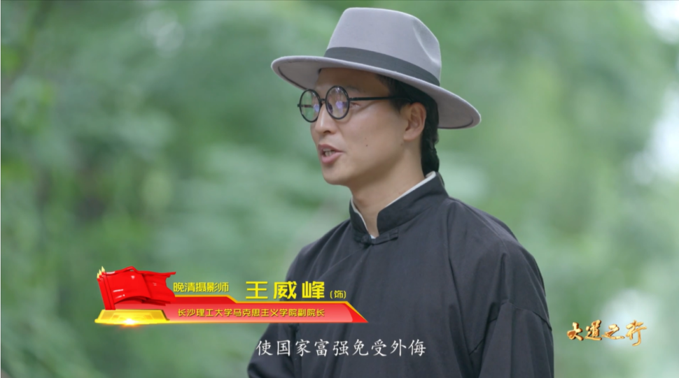 在节目开始,王威峰老师饰演的晚清摄影师出现在1909年京张铁路竣工前夕的施工情景模拟现场,向同学们讲述了詹天佑先生主持修建京张铁路的艰难过程,由此引出本期节目主题——为中国寻找一条独立自主、国富民强的发展道路。