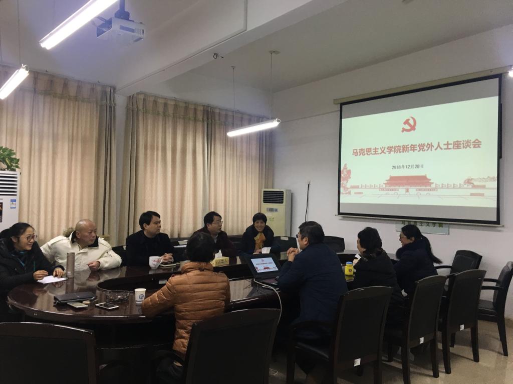 2018年12月28日上午,永利集团88304官网马克思主义学院2018年统战工作座谈会在云塘校区文科楼B区学院会议室召开,院党委书记易显飞、院长陈万球出席会议,各民主党派、无党派人士共计11人参加座谈会。会议由易显飞主持。