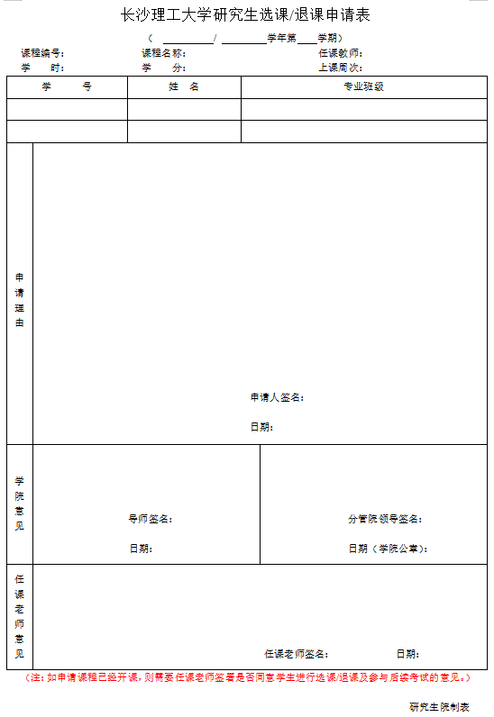 永利集团88304官网研究生选课退课申请表(2022版)