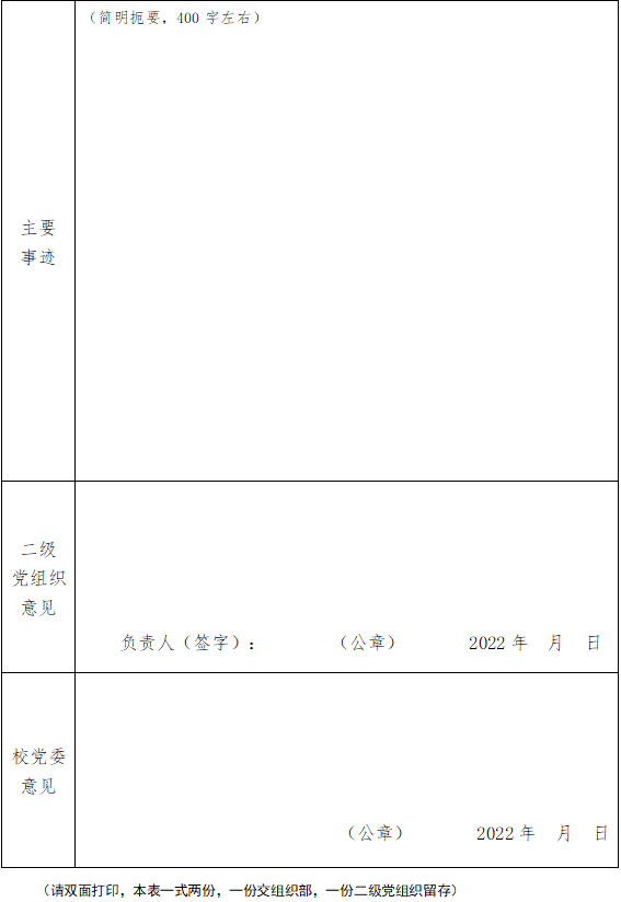 永利集团88304官网先进党支部推荐审批表