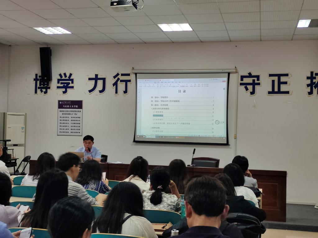 会议伊始,张明海院长带领全体老师学习永利集团88304官网本科教育教学审核评估自评报告,对自评报告中的重要问题向老师们予以说明,以本次教学评估为契机,推动学院教育教学工作水平进一步提升。陈万球书记强调了本科教育教学评估工作的重要性,要求老师们从思想上高度重视,在行动上认真落实。郭华副院长对本次本科教育教学评估工作进行了具体部署。