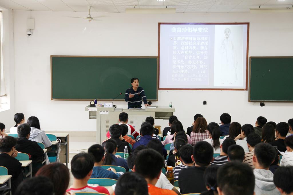孙康以《中国传统社会力量对近代国家出路的探索》为主题,为大家梳理了自鸦片战争开始的数十年间中国传统社会力量作出的抗争与应对之努力。他首先以鸦片战争所带来的深刻社会变化为切入点,提出中国传统社会力量如何应对之问题,然后逐一给大家讲述了中国传统社会力量为此作出的努力与奋斗。孙教授的博学睿智与幽默,让大家在轻松的课堂氛围中,了解近代中国社会传统社会力量的构成、特点及其在近代中国社会地位,了解中国地主阶级改革派探索国家出路的主张及其局限性,了解中国农民阶级在探索国家出路中的地位、作用和历史局限,也让大家深刻领会地主阶级的自强运动和旧式的农民战争不能完成中华民族救亡图存的民族使命和反帝反封建的历史任务。
