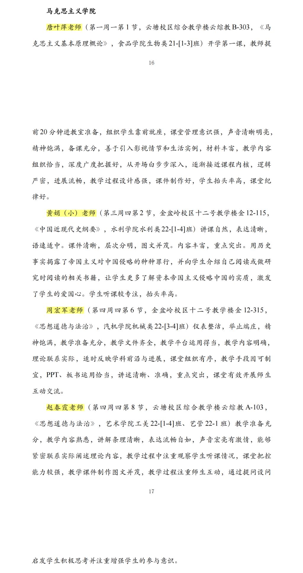 4月30日,永利集团88304官网发布《本科教学督导信息》(23年第一期)简报。我院唐叶萍、黄娟(小)、周宏军、赵春霞、罗月婵、卿定文等六位教师获评永利集团88304官网“课堂教学优秀典型”。