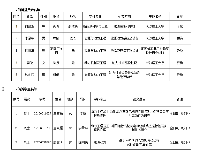 能源与动力工程学院 2023年12月研究生学位论文答辩安排