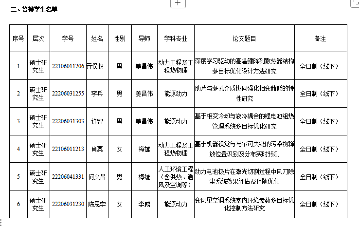 2025年能源与动力工程学院研究生学位论文答辩安排(第十组)