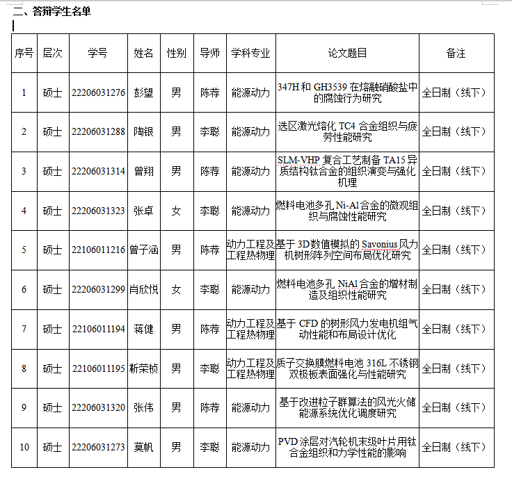 2025年能源与动力工程学院研究生学位论文答辩安排(第五组)