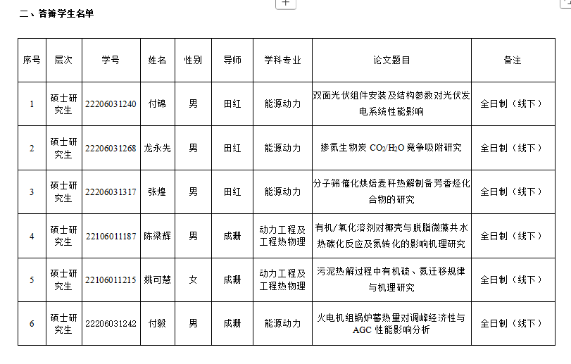 2025年能源与动力工程学院研究生学位论文答辩安排(第四组)