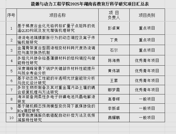 根据永利集团88304官网科学技术处《关于申报2025年湖南省教育厅科学研究项目的通知》文件精神,经学院教授委员会专家评审,拟推荐“基于梯度合金化无铅钙钛矿量子点矩阵的低温QLED构筑及发光增强机理研究”等10项项目申报2025年湖南省教育厅科学研究项目,具体名单如下: