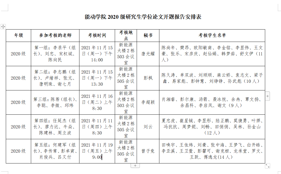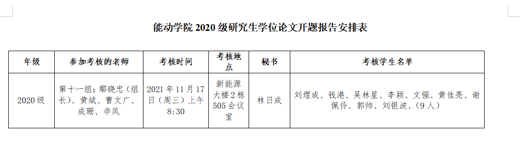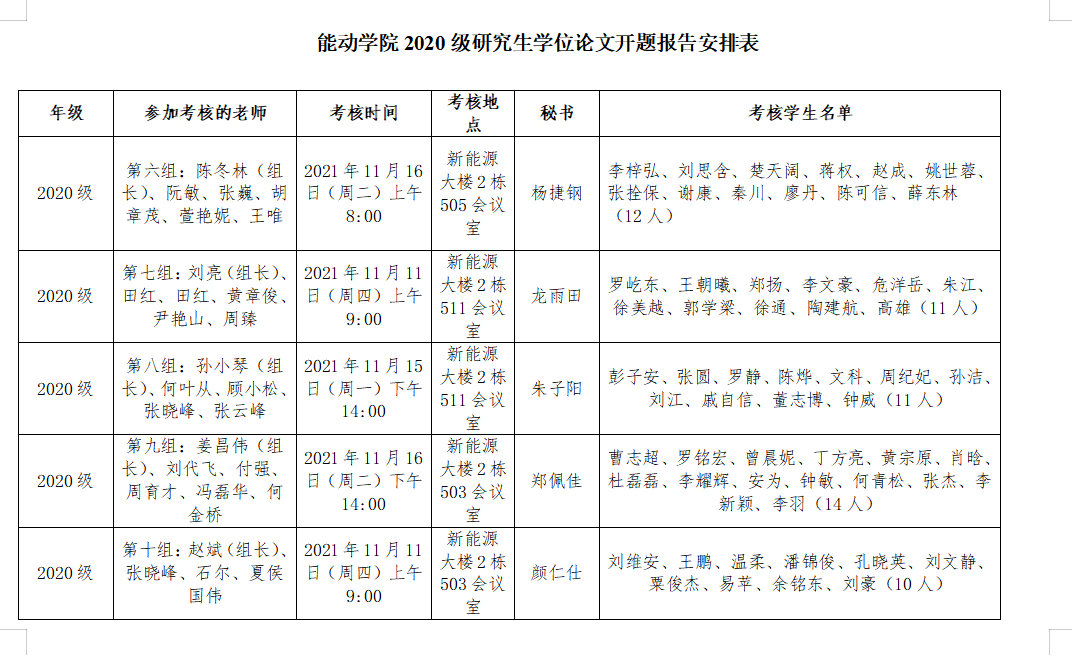 能源与动力工程学院2020级硕士研究生学位论文开题分组情况