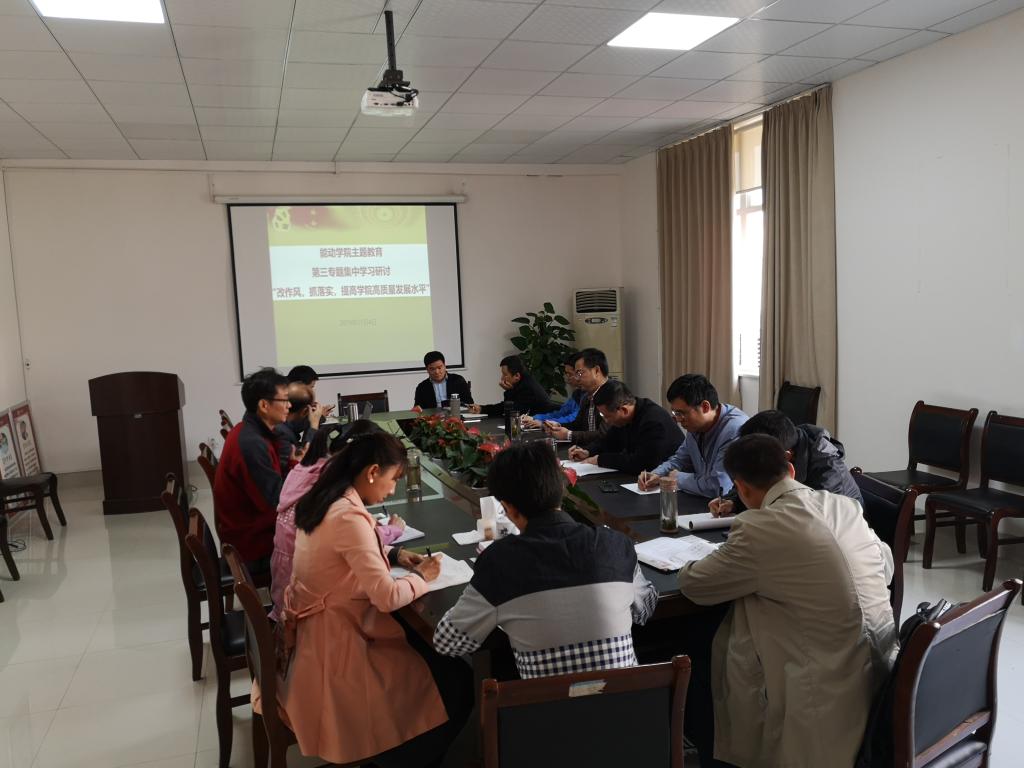 院长陈荐围绕“改作风、抓落实,提高学院高质量发展水平”这一主题作了中心发言。陈院长分析了学院的发展现状和存在的问题,梳理了学院应抓紧推进的重点工作,就如何改作风、抓落实作了方法指导。他指出,高质量发展是学院第一要务,领导干部和教职员工要紧紧围绕博士点申报和学科建设工作,勇于担当、团结奋进、开拓创新、扎实工作,全面提高人才培养质量,全面提升学科建设水平和管理水平,促进学院又好又快高质量发展。
